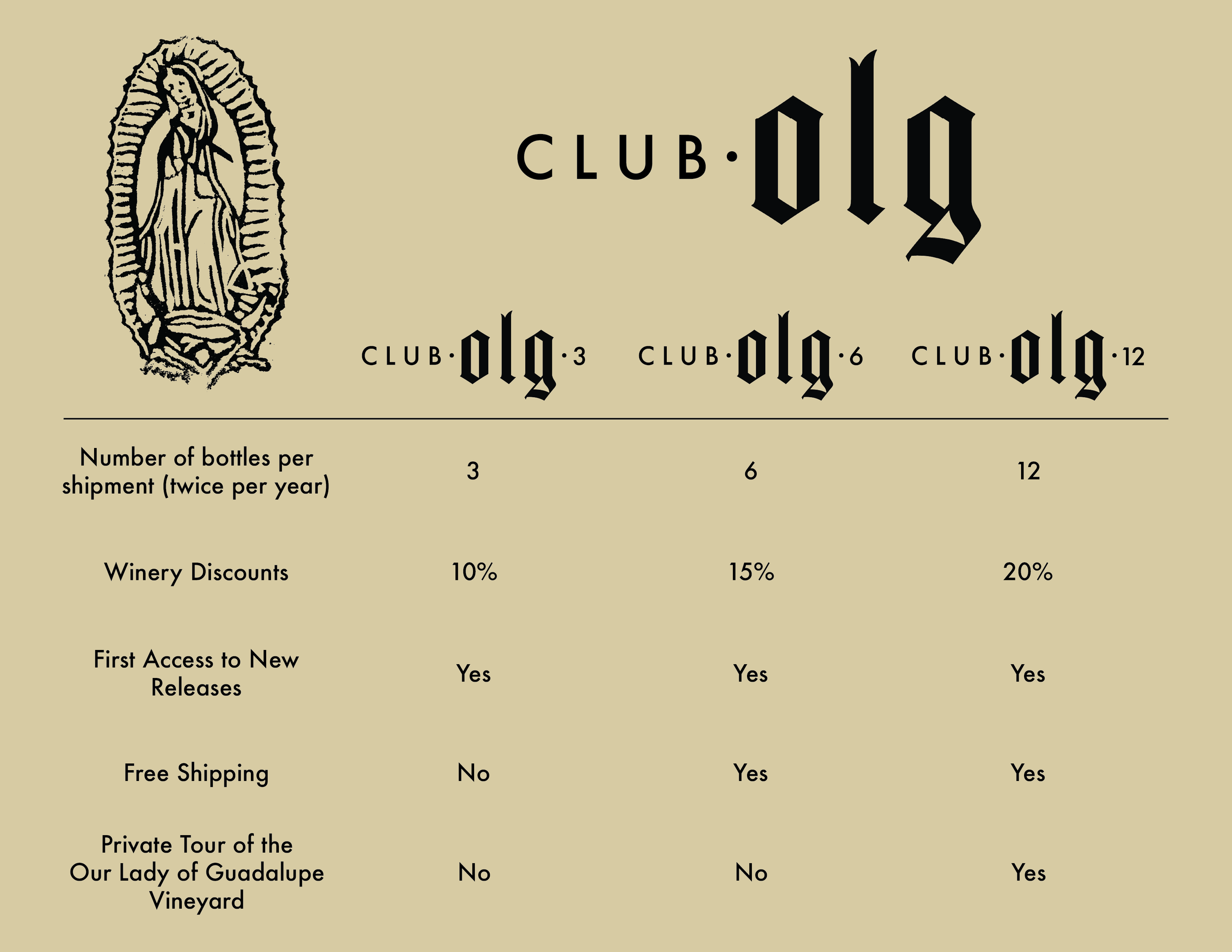 Once you receive the Club OLG Release email, log into your account and navigate to “Wine Club Orders”. You will then be able to customize the order as you see fit. Note, there may be some items that are required to be included in your shipment.